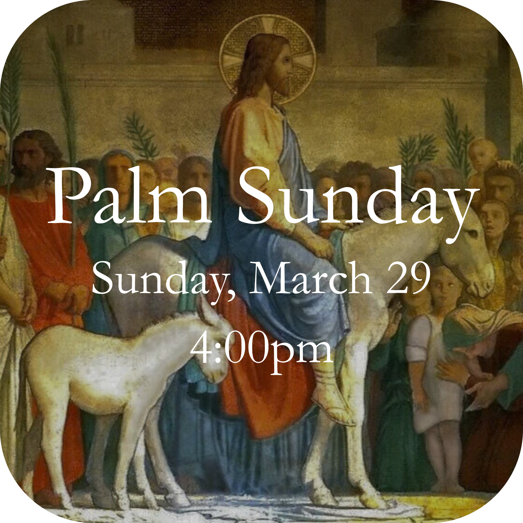 Palm Sunday is the beginning of Holy Week. The Liturgy begins at 4pm outside the church building with the Liturgy of the Palms, where we process into the church carrying palm branches, singing the joyful song of the crowd as they welcomed Christ into Jerusalem: “Hosanna in the highest! Blessed is he who comes in the name of the Lord!” But the same crowd who welcomed him on Sunday only days later cried, “Crucify him!” And so it is with the Church on Palm Sunday, as we follow the Liturgy of the Palms with a dramatic Gospel Reading, where the different parts are read by many different people in the congregation. With this, Holy Week begins as we proclaim that Christ is the Promised King with full awareness that his blood is on our hands. The palms that we waved going into the church are saved and burned to make the ashes for next years’s Ash Wednesday. The liturgy will conclude around 5:15pm, to be followed by our
