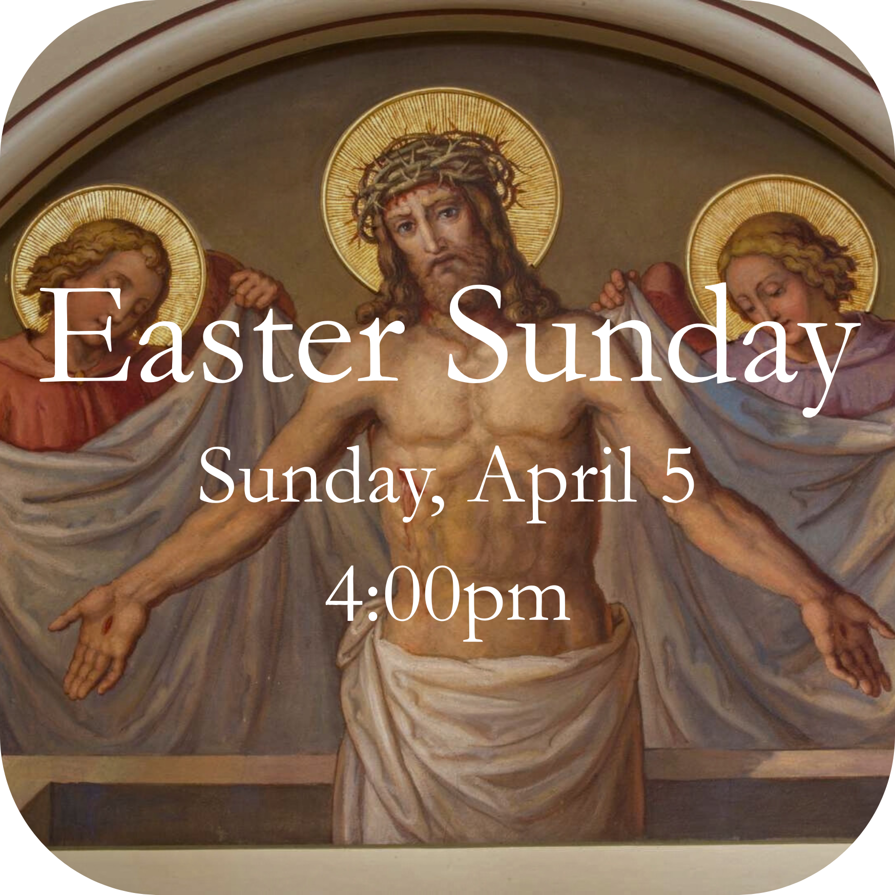 Christ is risen! Alleluia! Easter Sunday is the happy end to a full week. While the Easter Vigil is the climax of Holy Week, Easter Sunday continues the celebration. The Liturgy begins at 4:00pm with Holy Communion. Given that the Vigil can be difficult for children, we make the time after the Easter Sunday liturgy to be especially engaging for children with an Easter Egg hunt set up on the playground behind the church building.