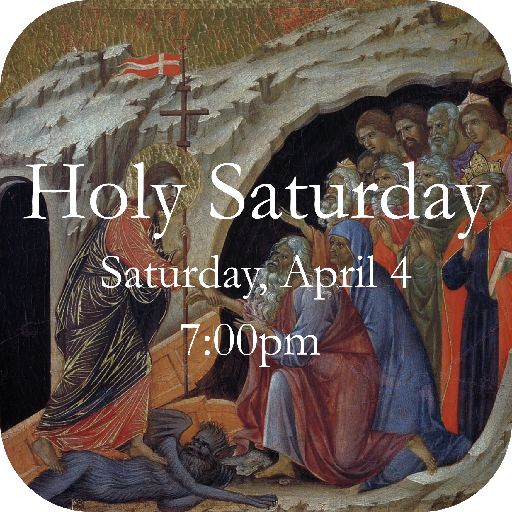 Holy Saturday is when Christ’s body was in the grave, but His spirit went to the place of the dead. At 7:00pm, around sunset, the Church gathers for the Easter Vigil, which is officially the first service of Easter Day. This ancient liturgy, originally composed by St. Ambrose of Milan (c. 339 – c. 397), features “the Exultet” (a chant recounting the great works of Christ in the Atonement), the New Fire, and several readings relating the Exodus to the Resurrection. The liturgy ends with the loud ringing of bells, shouts of “Alleluia!”, and then proceeds to a champagne and cake party. Those attending the Vigil are invited to bring a favorite party food, drink, or dessert. Though this is a late-night service, parents with kids are encouraged to embrace this as the most important feast of our year as Christians. Please RSVP for this!